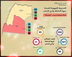 وأضافت المديرية عبر البيانات الموجودة في الخريطة أن حالات المستبعدة بعد تحاليل مخبرية وصل عددها حتى الرابعة من زوال اليوم السبت 927 لتبقى حالات الإصابة مستقرة في 5 حالات شفيت منها أثنتين و ثلاثة الأخيرة مازالت قيد العلاج