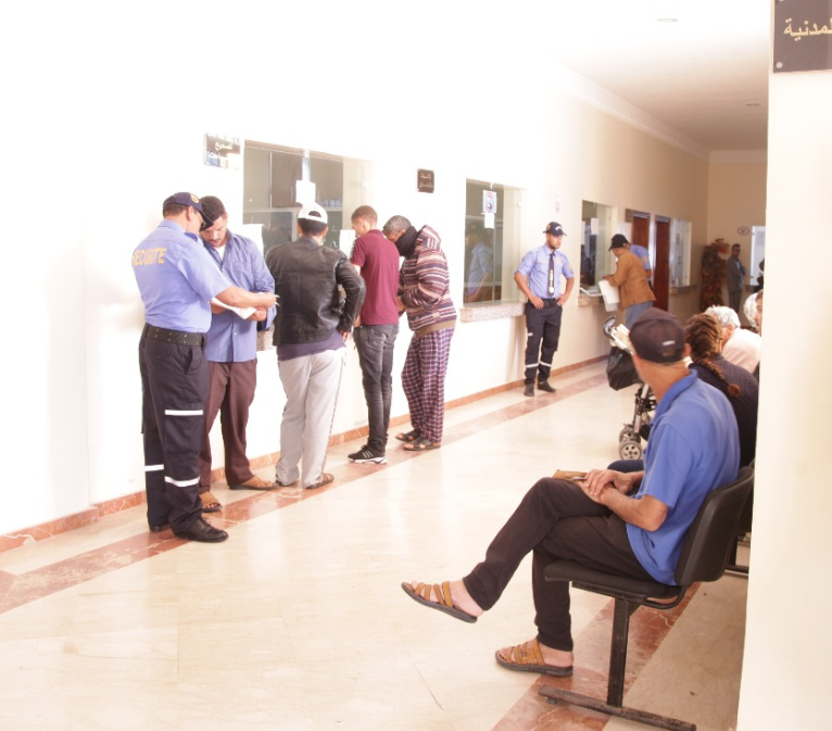 النموذج من مدينة المرسى جنوبي العيون كبرى حواضر الأقاليم الصحراوية، هناك حيث يتوافد المواطنون بكثرة خلال أولى ساعات العمل التي تبدأ من التاسعة صباحاً، حتى الساعة الرابعة و النصف عصراً.