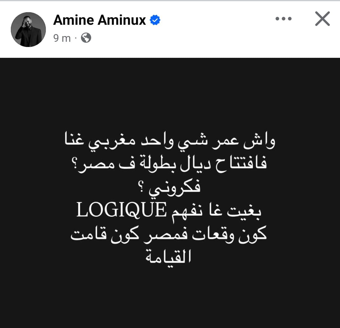 وفي هذا السّياق، انضمّ عدد من الفنّانين المغاربة إلى النّقاش الدّائر، من بينهم الفنّان أمينوكس (أمين التمري)، الذي عبّر عن استغرابه من هذا التّوجّه، معتبرًا أنّ مبدأ المعاملة بالمثل يظل غائبًا، ومثيرًا تساؤلات حول منطق اختيار فنّان أجنبي لإحياء افتتاح بطولة تقام في المغرب.