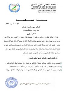 وطالب “التحالف المدني لحقوق الإنسان”، بالعمل على الإجراءات القانونية والإستعجالية، في حق كل المتهاونين من أرباب شركات الأشغال، يضيف البيان.
