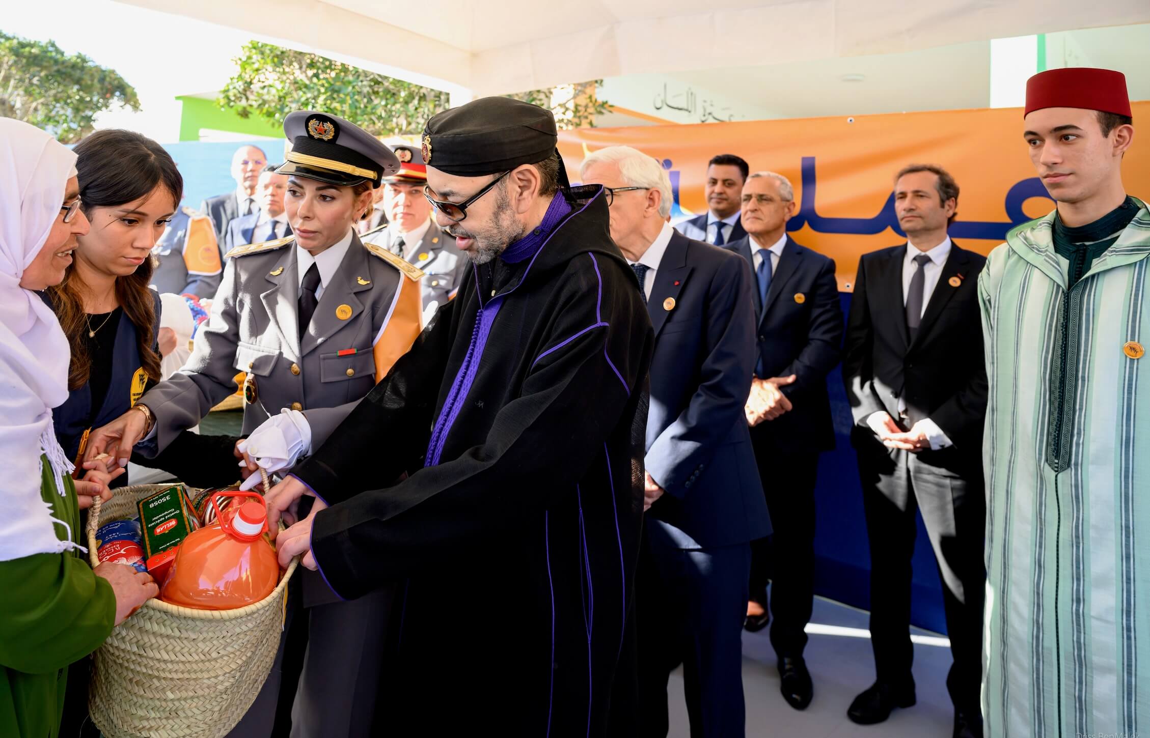 وبالمناسبة، أشرف الملك، مرفوقا بولي العهد، على تسليم مساعدات غذائية بشكل رمزي لعشرة من أرباب أو ممثلي الأسر المستفيدة، قبل التقاط صورة تذكارية مع عدد من المتطوعين المشاركين في العملية.