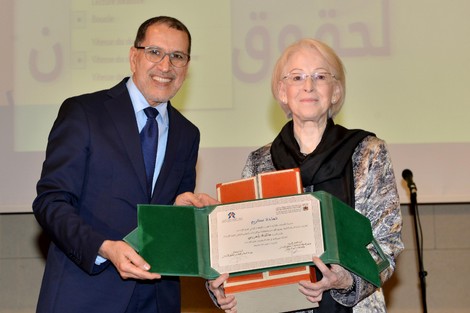وقدّم رئيس الحكومة المغربي، سعد الدين العثماني، درع تكريمي لعالمة الاجتماع المغربية والنّاشطة الحقوقية عائشة بلعربي.
