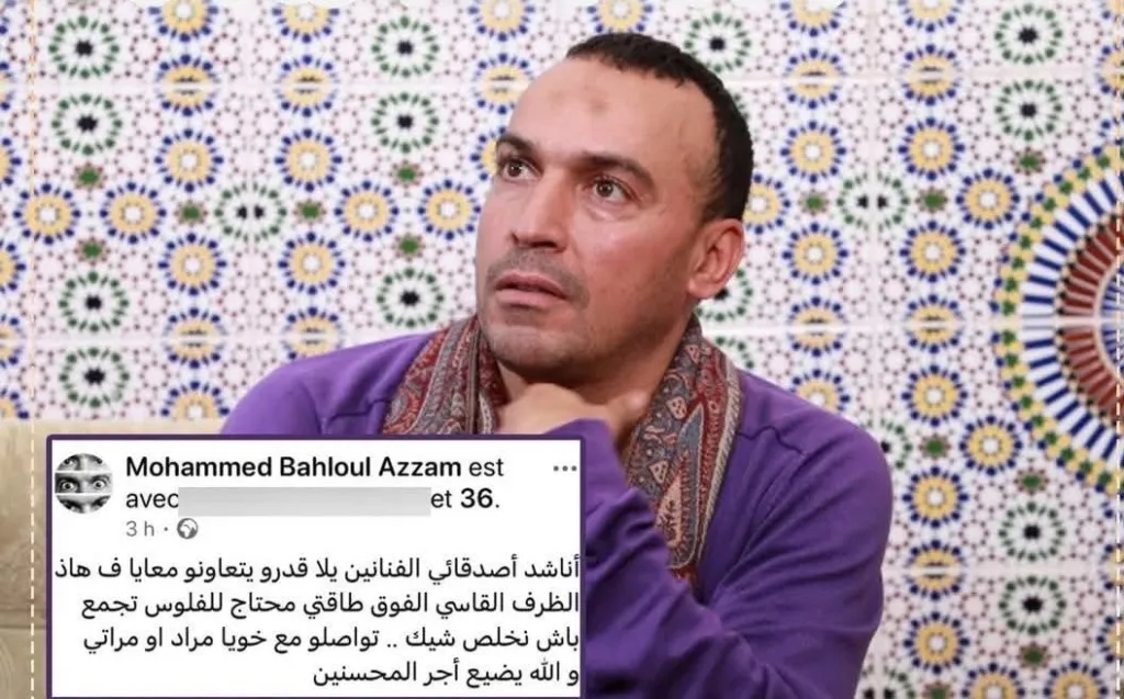 أطلق الفنّان الكوميدي المغربي محمد عزّام، الشّهير بلقب “بهلول”، نداءً عاجلًا عبر حسابه على موقع “فيسبوك”، طالبًا فيه مساعدة زملائه في الوسط الفنّي لتجاوز أزمة ماليّة خانقة يمر بها.