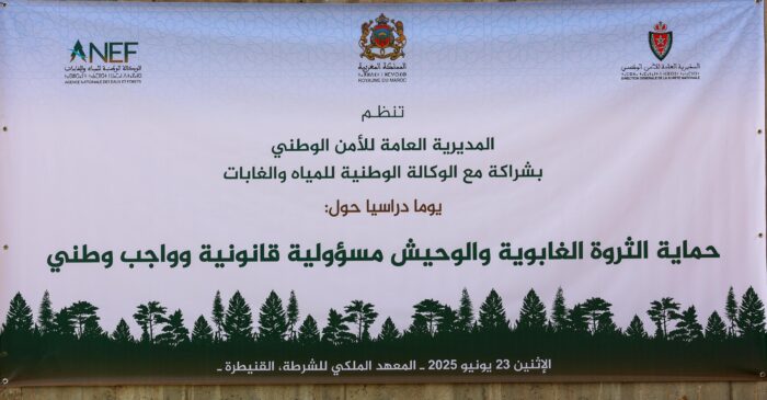 اِحتضن المعهد الملكي للشّرطة بالقنيطرة، اليوم الإثنين 23 يونيو، يوماً دراسيًّا تحت شعار “حماية الثّروة الغابويّة والوحيش: مسؤولية قانونيّة وواجب وطني”، في مبادرة مشتركة بين المديريّة العامّة للأمن الوطني والوكالة الوطنيّة للمياه والغابات، تروم تعزيز التّعاون لحماية البيئة الطّبيعيّة بالمغرب.