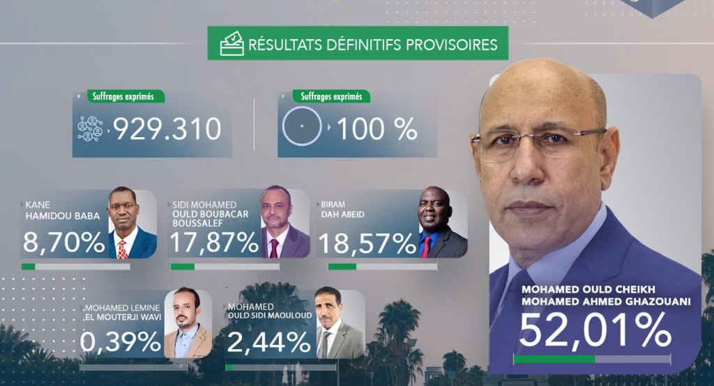 ولعل واقع النتائج الأولية الرسمية المعلنة أمس الأحد، من قبل اللجنة المستقلة للإنتخابات لم تكن مفاجئة، فكل المراقبين توقعوا فوز “ولد الغزواني” في الشوط الأول من الاستحقاق، إلا أنهم جميعاً لم يكونوا على يقين تام بأن جولة واحدة ستكفي لحسم السباق في أوله.
