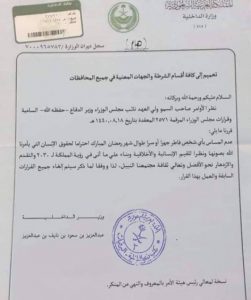 القرار الذي انتشَرَ كالنّارِ في الهشيم، علّل الأمر، بأنّ ذلك يُعدُّ “احتراما لحقوق الإنسان التي يأمرنا الله بصونها ونظرا للقيم الإنسانية والأخلاقية وبناء على ما أتى في رؤية المملكة 2030”.