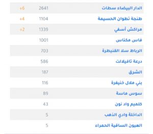 لم تسجل جهات الصحراء الثلاث و الحمد لله ، هذا الصباح أي إضافات على جدول الإصابات المؤكدة بفيروس كورونا كوفيد 19، فيما تصدرت جهة الدار البيضاء لا ئحة الإصابات اليومية، فمنذ السادسة من مساء أمس الأحد إلى العاشرة اليوم الاثنين 1 يونيو 2020، ظهرت ست حالات جديدة رفعت نصيب الجهة إلى 2647.