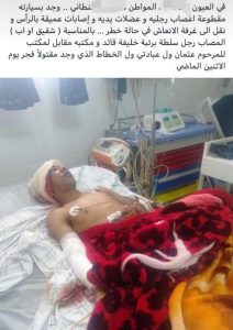 تناولت مصادر إعلاميّة قبل قليل، خبراً عاجلاً، يُفيد العثور على يافع بـ”جماعة الدشيرة”، حيثُ كان ملقيًّا وقد بُتِرت أعصابُ قدميه ويداه.
