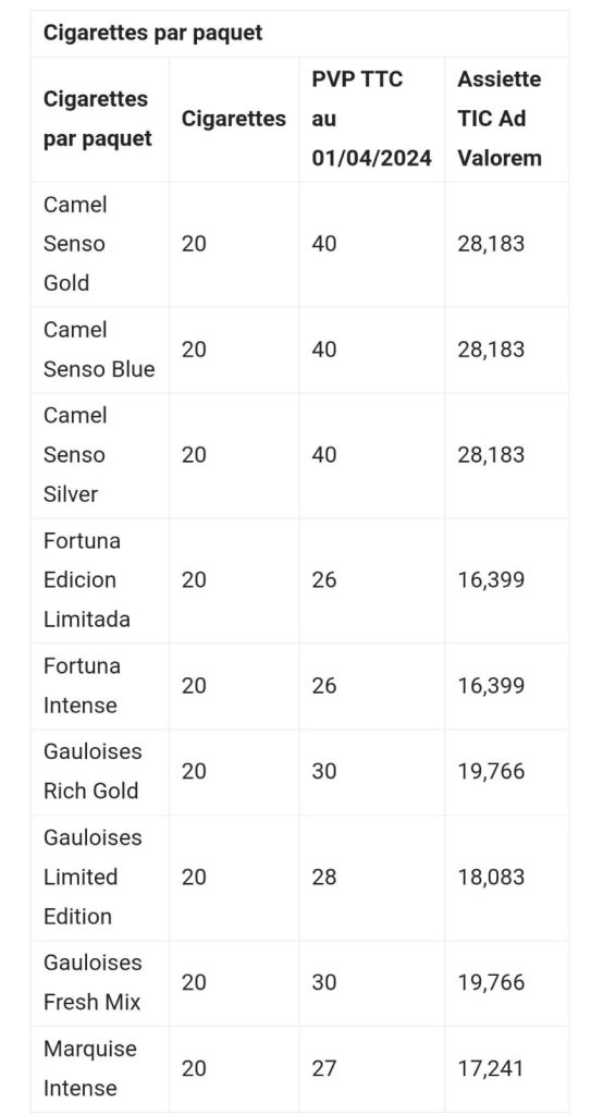 ويتضمن المنشور الجمركي، الذي يحمل زيادة في أسعار السجائر بناءً على قرار لوزير الاقتصاد والمالية بتاريخ 28 مارس 2024، قائمة تشمل الماركات التي تمت الموافقة عليها وستعرف زيادة في الأسعار.
