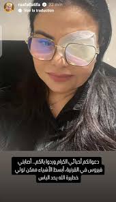 ونشرت “سلطانة الطرب المغربي” صورة لها عبر خاصية “الستوري” على منصة إنستغرام، وقد ظهرت فيها وهي تضع ضمادة طبية على عينها المصابة، مرفقة بتدوينة قالت فيها: “دعواتكم أحبابي الكرام وردوا بالكم.. أصابني فيروس في القرنية”، مضيفة: “أبسط الأشياء ممكن تولي خطيرة.. الله يحد الباس”.