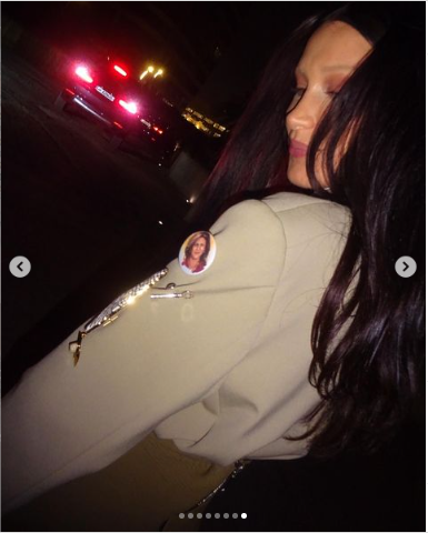 وشاركت حديد على إنستغرام صورة لها وهي ترتدي شارةً تحمل صورة مراسلة الجزيرة التي قتلتها نيران الاحتلال الإسرائيلي، شيرين أبو عاقلة – كانت قد أهدتها إياها لينا أبو عاقلة في اليوم ذاته – إلى جانب خريطة فلسطين.